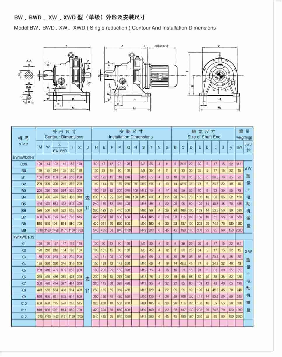 ??標準型擺線針輪減速機的輸入軸與輸出軸的軸伸端形式為圓柱形,采用普通平鍵聯接。軸徑尺寸公差根據GB1801-79《公差與配合》的規定。普通平鍵尺寸按GB1096-79《普通平鍵型式的尺寸》的規定。連接法蘭止口按GB1801-79的(h9)配合。